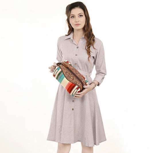 American Darling Toiletry Hand Tooled Saddle Blanket Fabric Genuine Leather Western Women Bag Handbag Purse | for Cute