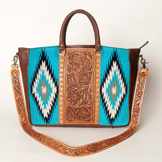American Darling Briefcase Hand Tooled Saddle Blanket Genuine Leather Women Bag Western Handbag Purse