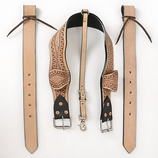 Comfytack Horse Saddle Flank Cinch Girth Handtooled Leather W/ Billets Antique Tan