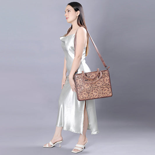 American Darling ADBG477TAN Tote Hand Tooled Genuine Leather Women Bag Western Handbag Purse
