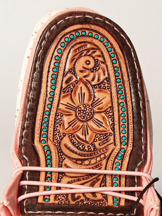 American Darling ADFT133PK9 Hand tooled carved genuine leather trim lightweight shoe footwear slip on