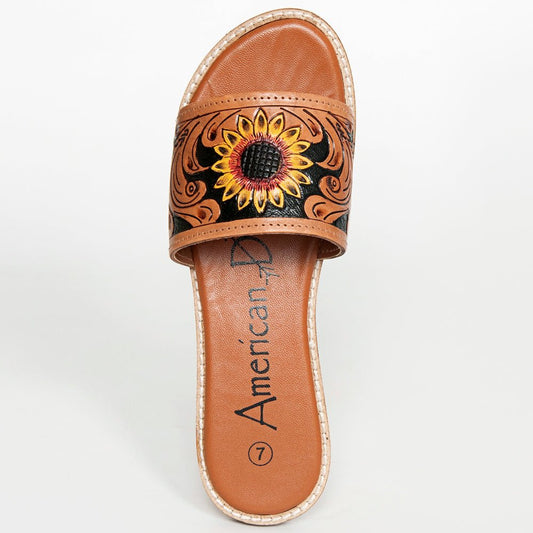 American Darling ADFTE106A Hand tooled carved genuine leather sandal footwear flip flop