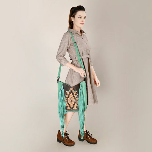 American Darling ADBG1397 Cross Body Hand Tooled Hair On Genuine Leather women bag western handbag purse