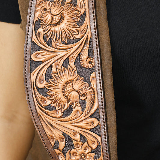 American Darling Floral Long Hair Claw Hand Tooled Carved Genuine Leather Brown Clips Clutcher Gift For Women Girls
