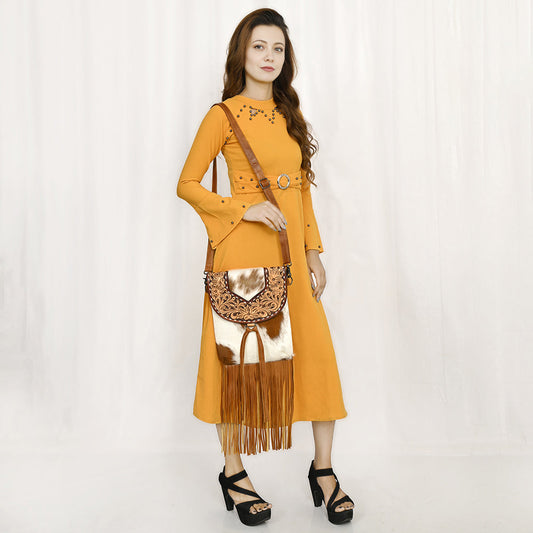 Ohlay Bags KBA117 Cross Body I Hand Tooled Hair-On Genuine Leather Women Bag Western Handbag Purse