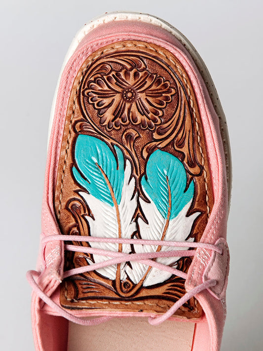 American Darling ADFT133PK3 Hand tooled carved genuine leather trim lightweight shoe footwear slip on