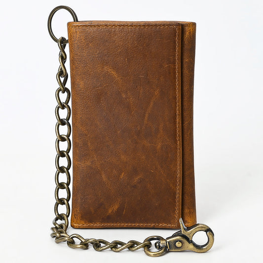 American Tanner Genuine Leather Rodeo Trifold Unisex Wallet With Chain Snap