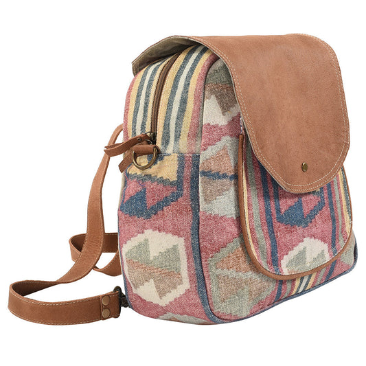 OHLAY KB113 Backpack Upcycled Canvas Genuine Leather women bag western handbag purse