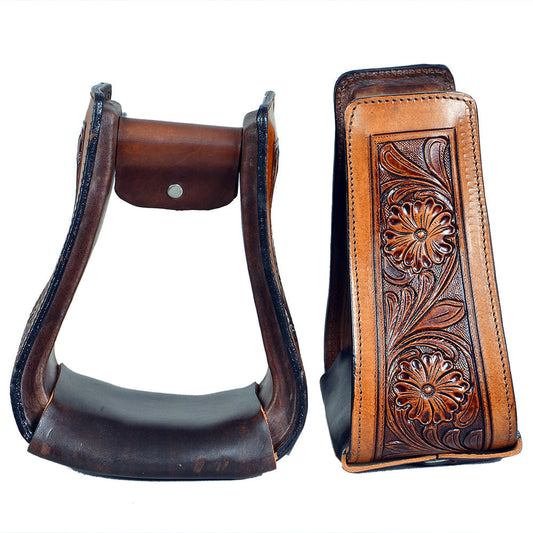 Horse Western Saddle Stirrup Leather Floral Stirrups Pair Hilason