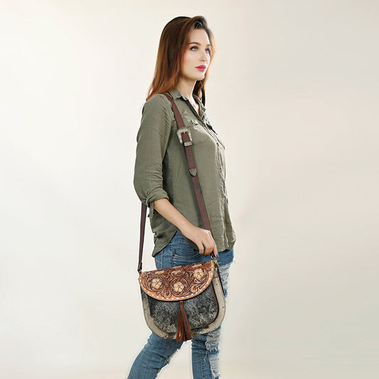 American Darling ADBGA424 Hand Tooled Hair-On Genuine Leather Women Bag Western Handbag Purse