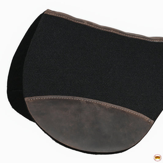 HILASON Western Horse Wool Felt Round Contoured Western Saddle Pad W/ Genuine Leather Black