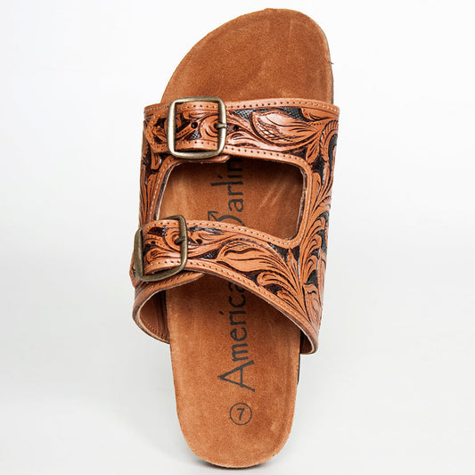 American Darling ADFTE103A Hand tooled carved genuine leather sandal footwear flip flop
