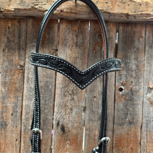 Basketweave Dark Oil One Ear Headstall / Bridle