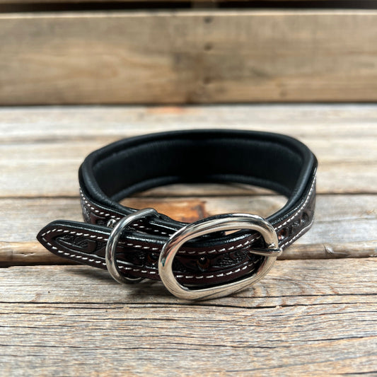 Tooled Green and Brown Leather Beaded Dog Collar #DC447