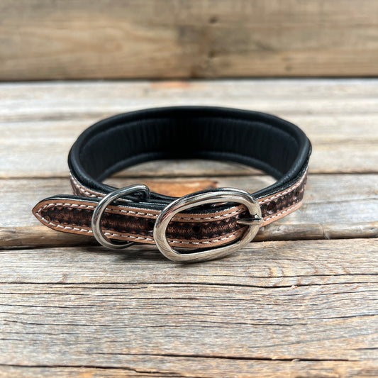 Tooled Peach and Black Leather Beaded Dog Collar #DC445