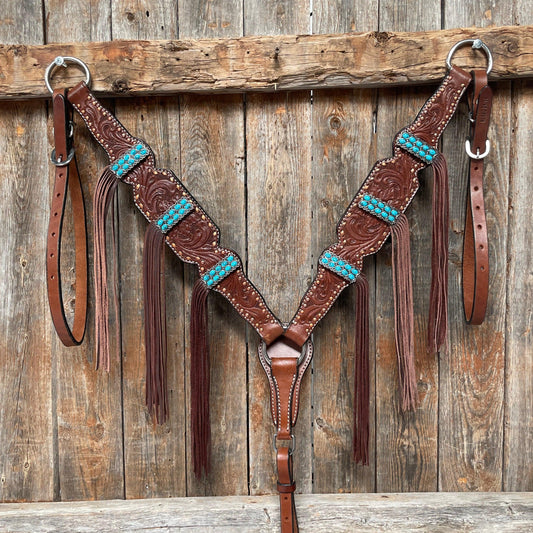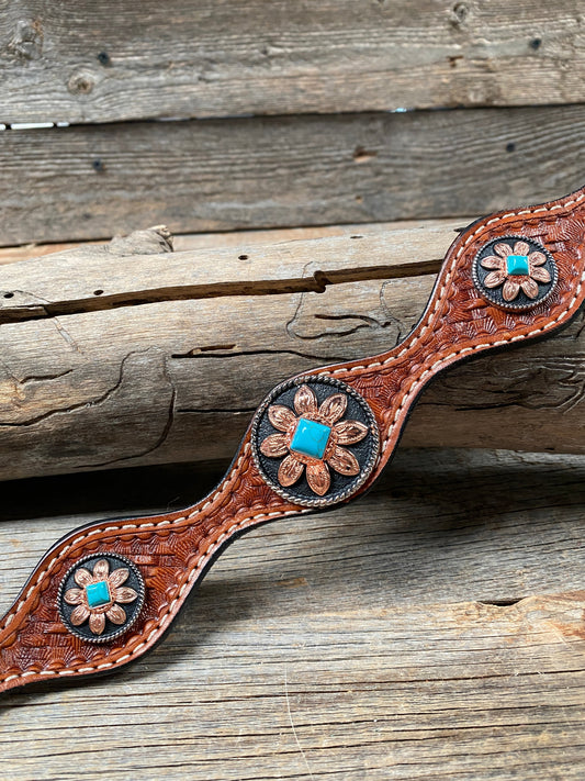 Silver Buckstitch and Flower One Ear / Breastcollar Tack Set #OEBC537