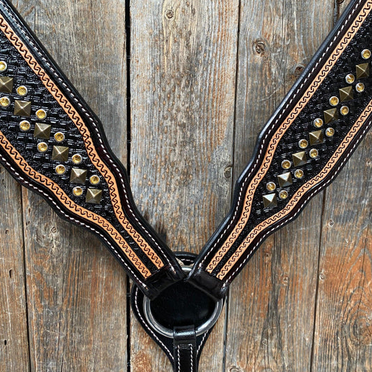 Two Tone Leather - Brass Studded Breastcollar #FK118