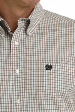 Men's Plaid Button-Down Short Sleeve Western Shirt - Khaki / White
