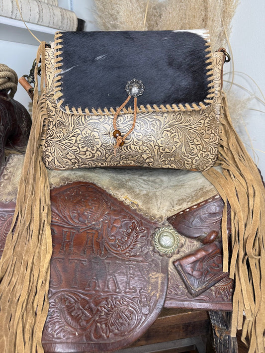 Carved Blossoms Leather & Hair On