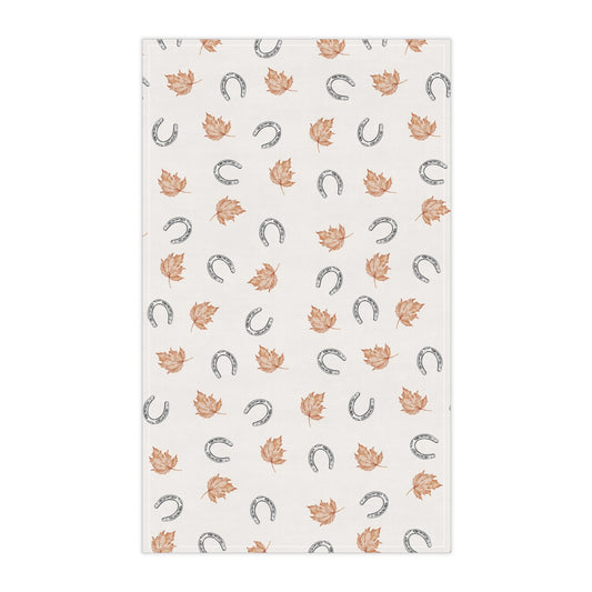 Fall leaves and horseshoes Autumn-Inspired Tea Towels, Cozy Kitchen Decor, Farmhouse Style, Gift for Homeowners, Ideal for Fall Cooking