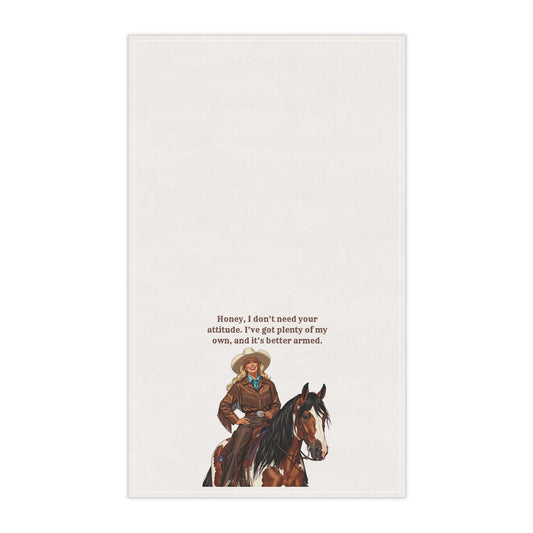 Cowgirl Humor Tea/Bar Towels | "Honey, I don't need your attitude. I've got plenty of my own, and it's better armed." Rustic Kitchen Decor, Gift for Horse Lovers, Unique Cotton Towels, Funny Country Kitchen Decor, Western [...]