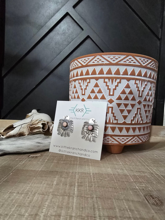 GABRIELA YAZZIE PINK CONCH SHELL THUNDERBIRD STUD EARRINGS