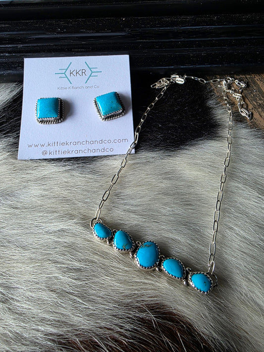 RENELL PERRY CHACO FIVE TURQUOISE STONE BAR NECKLACE