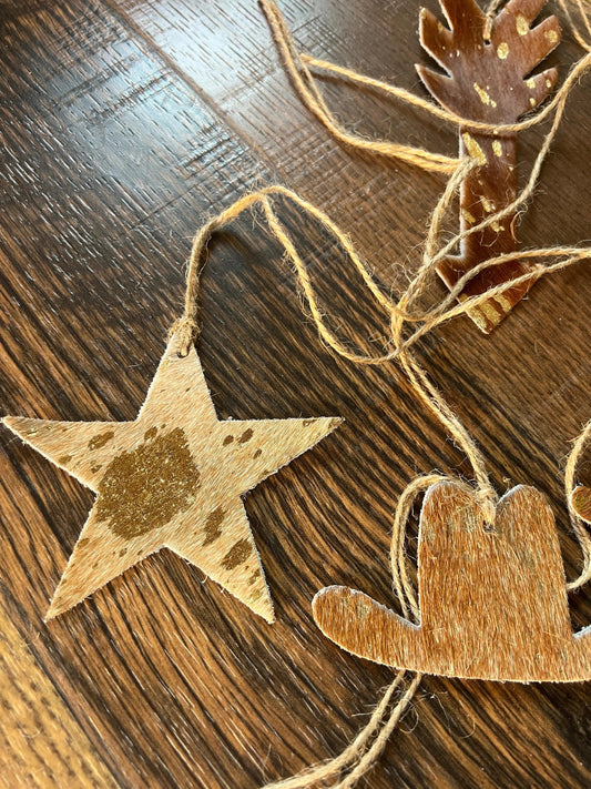 Brown/Gold Cowhide Leather Christmas Ornament- Sold Individually