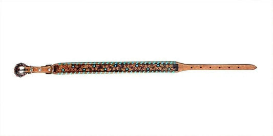 Genuine leather dog collar with teal rawhide