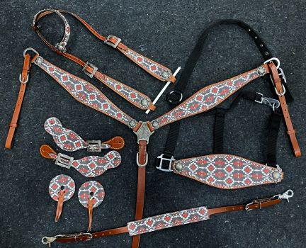 Southwest Navaho Print One Ear Headstall and Breast Collar 6- piece set
