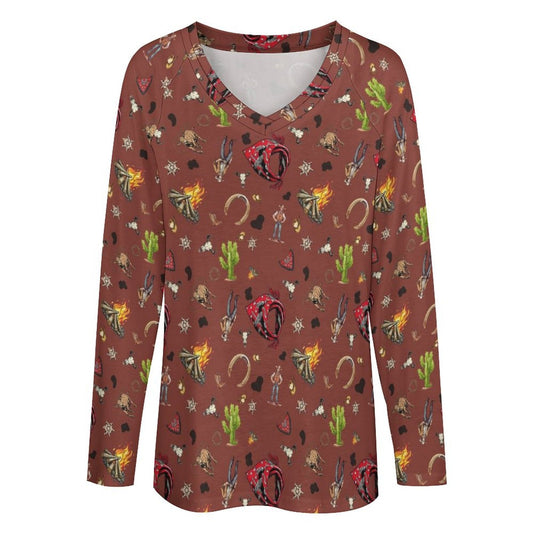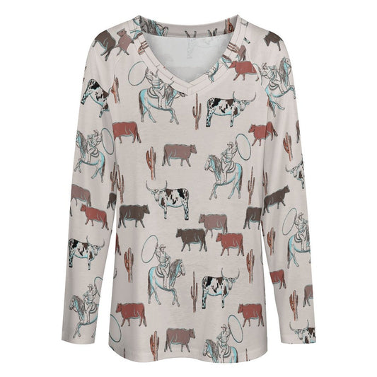 Baha Ranch Western Cow Cattle Long Sleeve Top