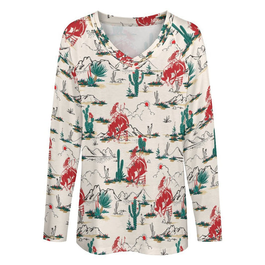 Baha Ranch Western Cactus Print Long Sleeve Top