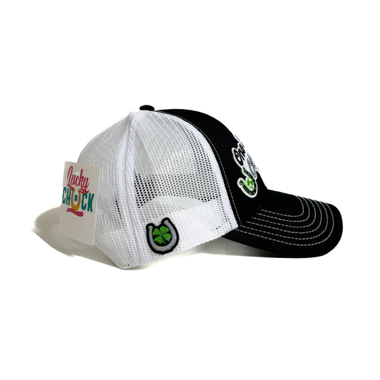 One Lucky Cowgirl Black & White Trucker Hat
