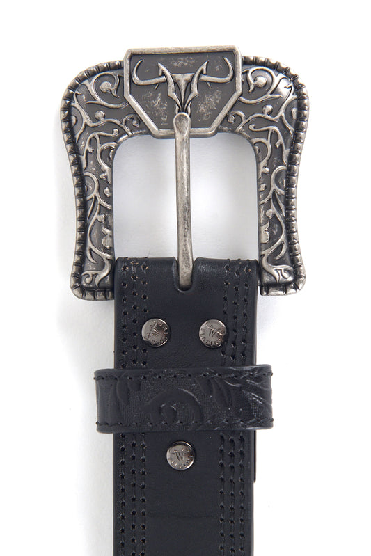 Mens Genuine Leather Aztec Embroidery Belt - Black