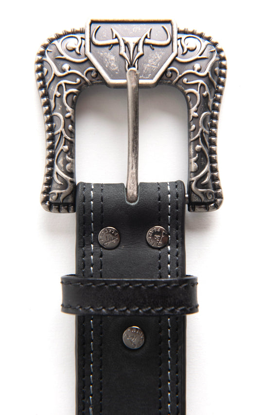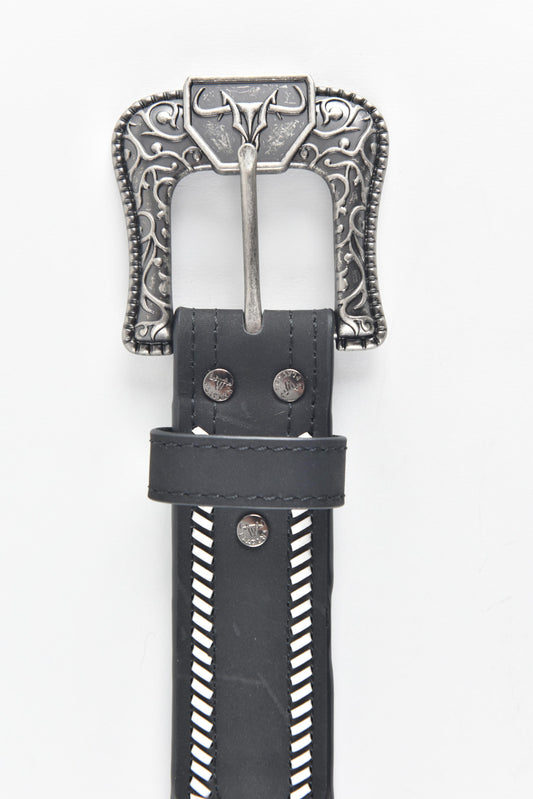 Mens Genuine Leather 3D Hand Stitched Belt - Black