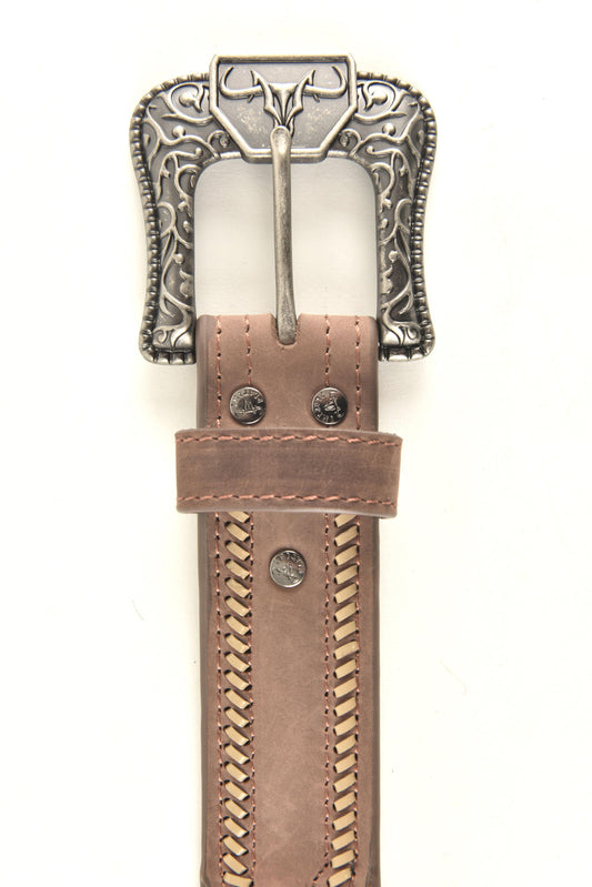Mens Genuine Leather 3D Hand Stitched Belt - Brown
