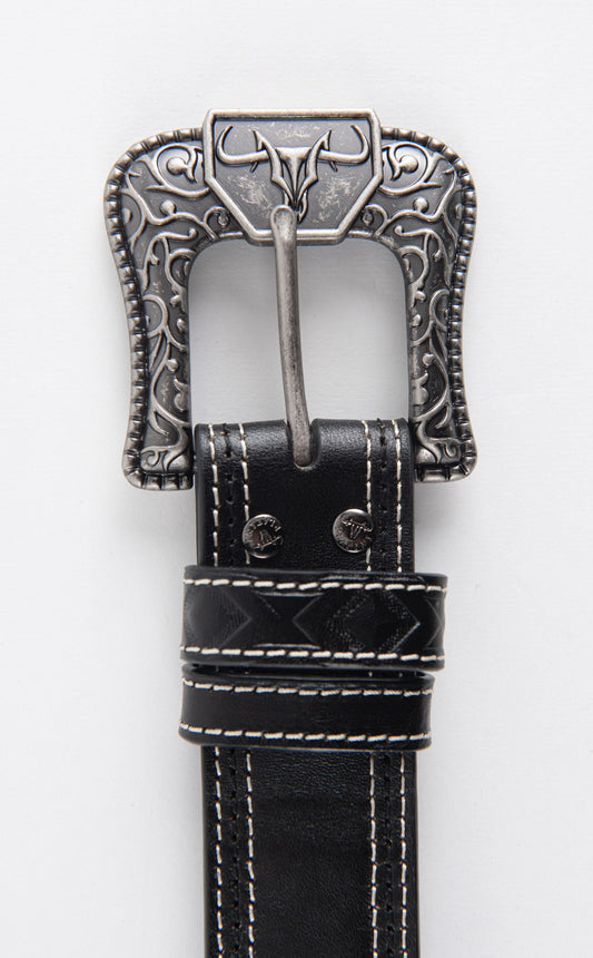 Mens Genuine Leather Aztec 3D Embossed Belt - Black