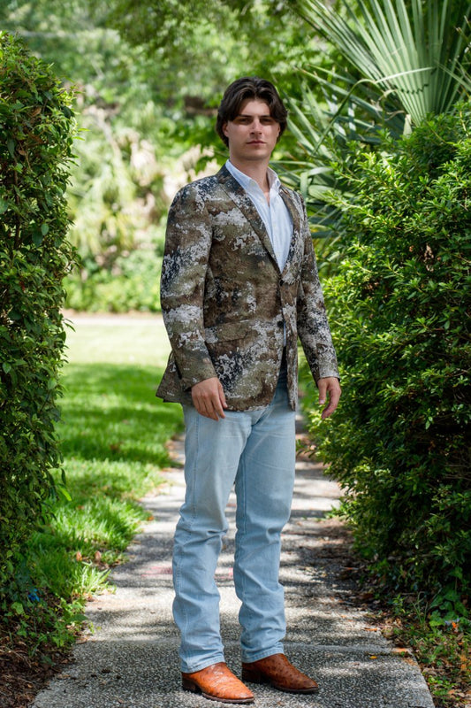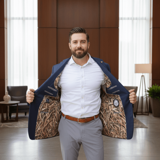 Navy Blazer with Mossy Oak Shadow Grass Blades Liner