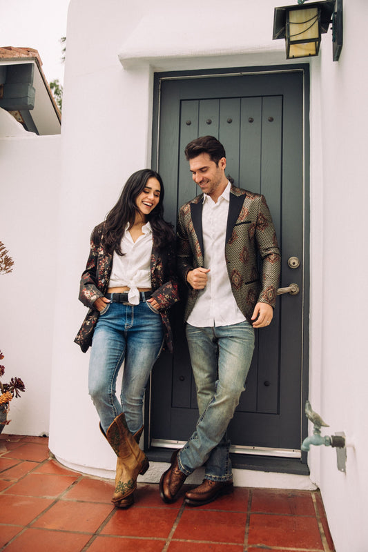 Ladies Cotton Black Embroidery Western Shirt With Suede