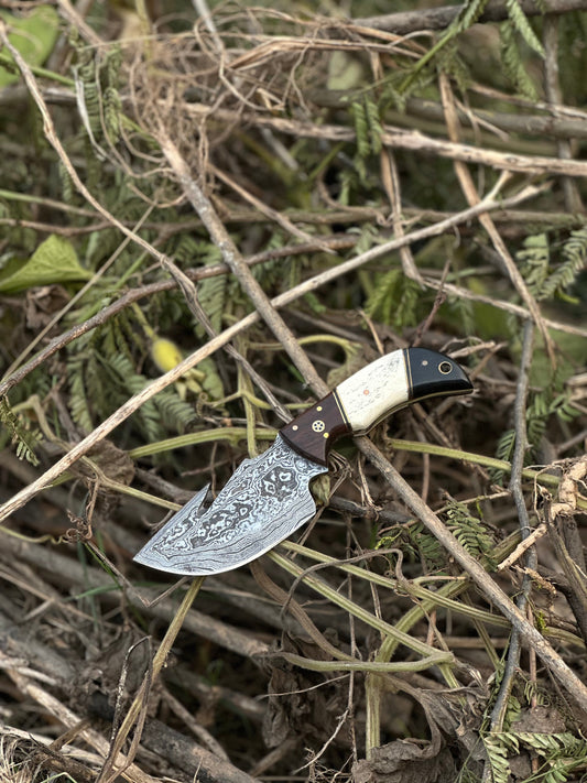 Custom Handmade Damascus Steel Guthook Skinning Knife with Camel Bone Handle - 7.5” Blade with Leather SheathRegular price $100.00 USDRegular priceUnit price per$120.00 USDSale price $100.00 USDSale