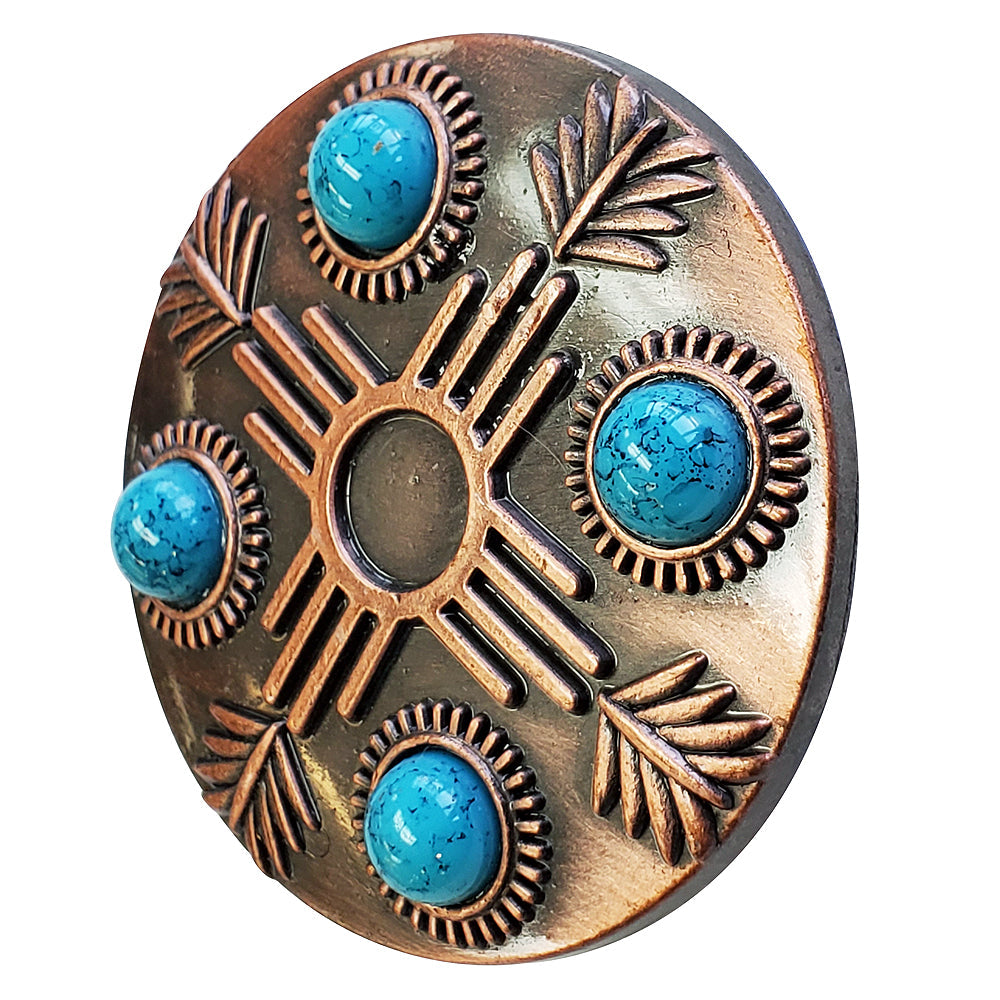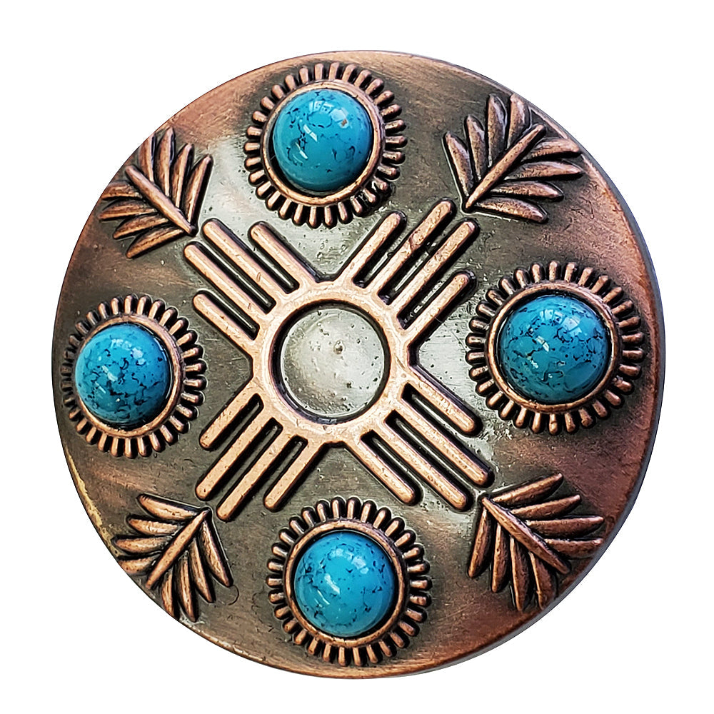 1 1/2" Hilason Western Horse Concho Antique Copper Turquoise Stone Brown