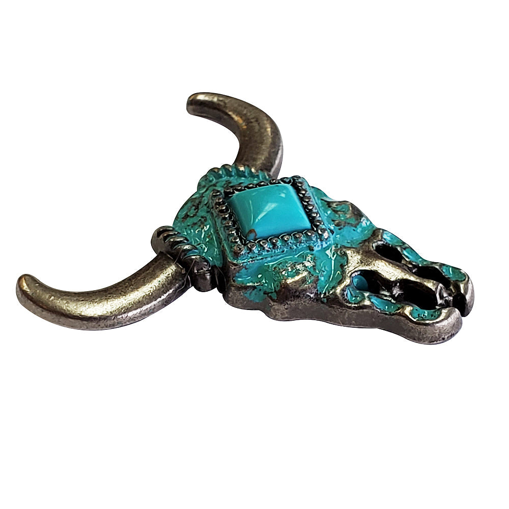 1 1/2" Hilason Western Horse Concho Antique Nickel With Turquoise Steer Head Turquoise