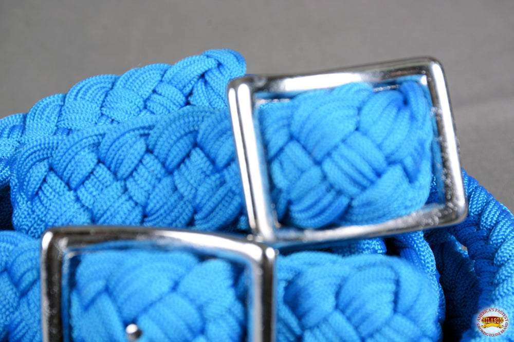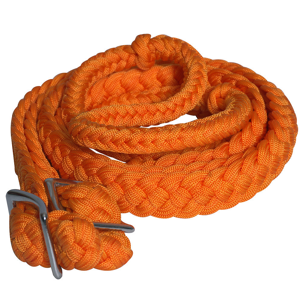 These are premium quality soft Poly Contest Barrel Horse Racing with conveniently located 4 knots for easy and comfortable grip. The braiding barrel grip is very professional and has no HOLLOW feel on them. The two Conway buckles used on these reins are all nickel plated for durability and adjustment. It is not the regular cheap imports you would commonly find. It is perfect contest reins for Barrel racing or simple trail riding.