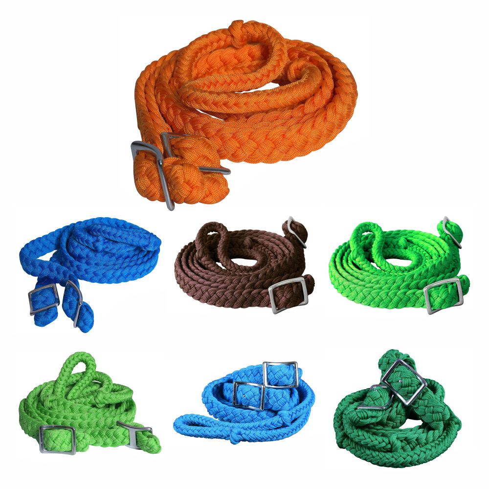 ✔ The barrel reins with knots can be washed in cold water and mild soap. It comes in various attractive colors as you can see in the images. You could go with solid colors or a blend of colors.