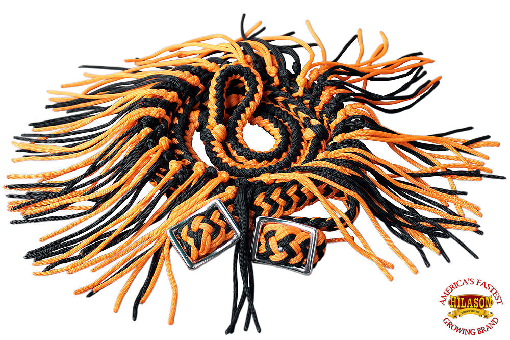These are premium quality soft Poly Contest Barrel Horse Racing with conveniently located 4 knots for easy and comfortable grip. The braiding barrel grip is very professional and has no HOLLOW feel on them. The two Conway buckles used on these reins are all nickel plated for durability and adjustment. It is not the regular cheap imports you would commonly find. It is perfect contest reins for Barrel racing or simple trail riding.