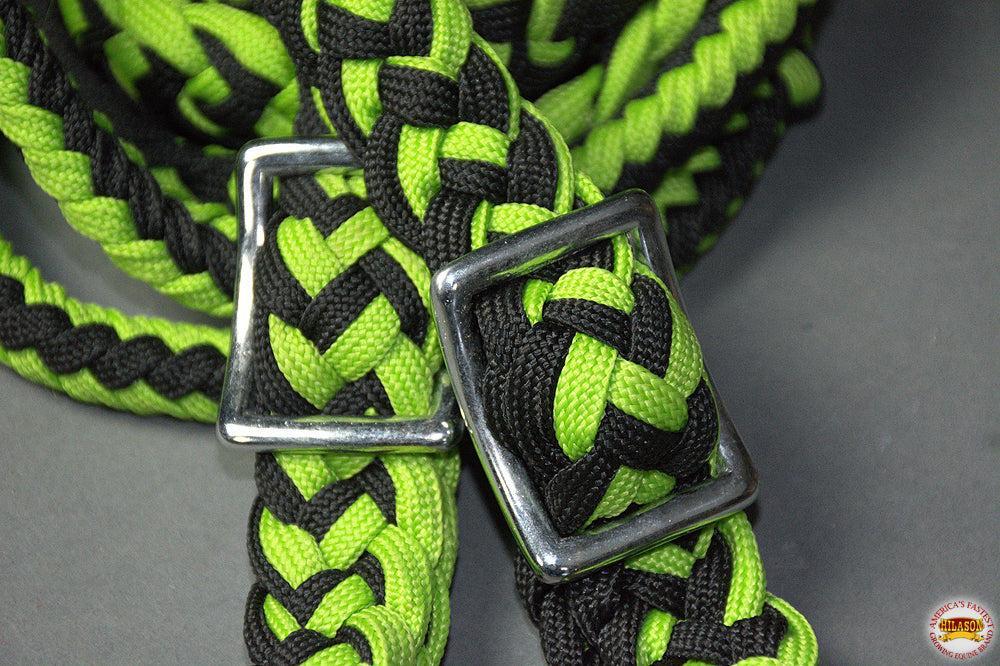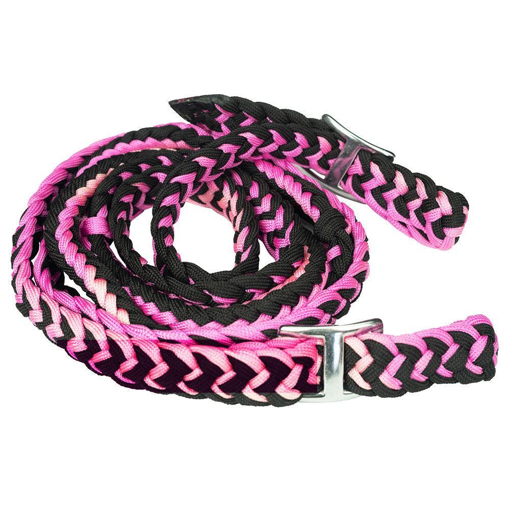 ✔ Features: In these poly barrel reins the braiding is very professional and has no "hollow" feel on them. The 2 Conway buckles used on these reins are all nickel plated for durability and adjustment. It is not the regular cheap imports you would commonly find. It is the perfect contest reins for Barrel racing or simple trail riding.