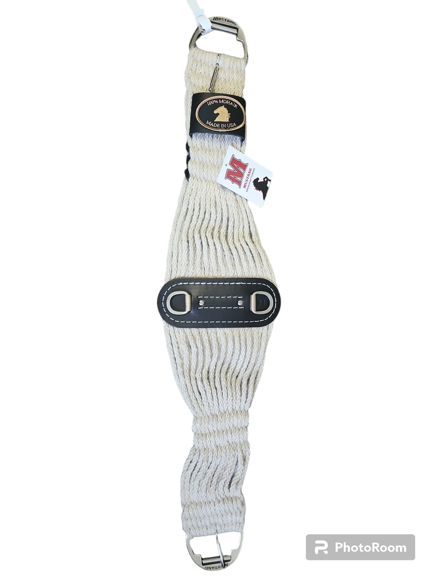 Mustang Pro-Roller Champion Roper Cinch -27 Strand 100% mohair roper cinch with leather sewn center, billet pocket and dual mustang pro-roller buckles. Cinch up your horse effortlessly with dual end roller buckless