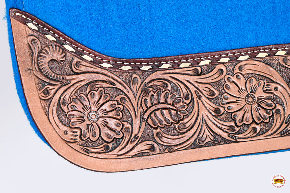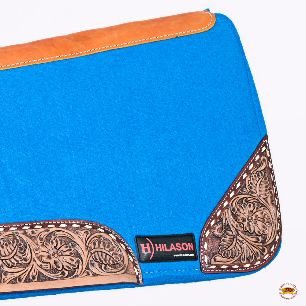 ✔ PREMIUM QUALITY MATERIALS: The HILASON Western Horse Saddle Pad is made of high-grade wool felt, offering exceptional shock absorption and comfort for your horse. This horse saddle pad has Hand Tooled top-grain genuine distressed wear leather for enhanced durability and style. Approximate dimensions: 32" length x 30" width, with a 3/4" thickness. ✔ FEATURE: This contoured western saddle pad promotes superior airflow and sweat-wicking, keeping your horse cool during long rides. Its anti-slip saddle pad function and split-panel construction move naturally with your horse’s back. The horse saddle wool pad molds to the horse’s shape from the first use, ensuring comfort and performance. Ideal for trail, Barrel, Roping, and Ranch riding..