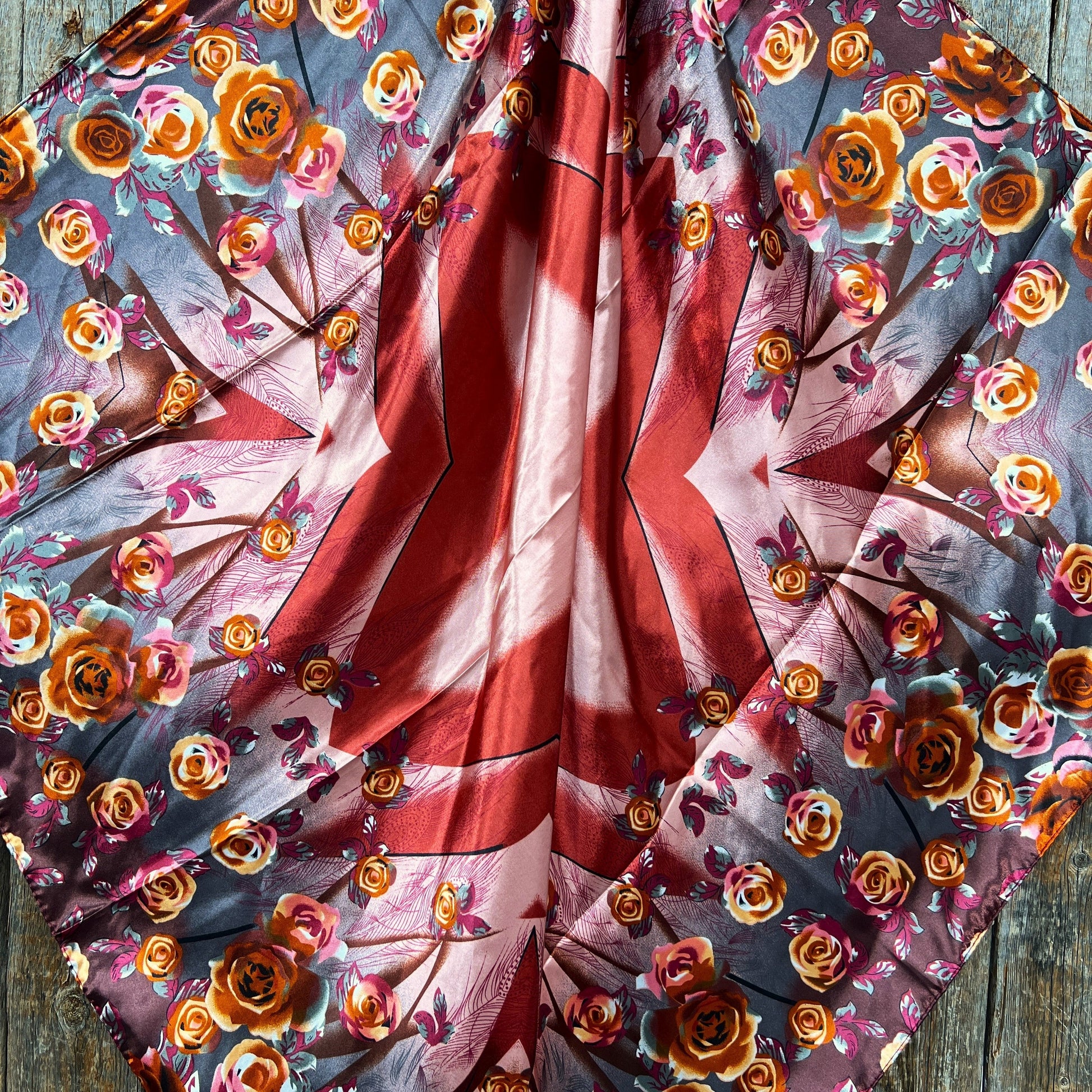 35X35" Pink and Rust Roses Wild Rag / Scarf -Copper Pink, AB, Champagne Slide WRC1007A