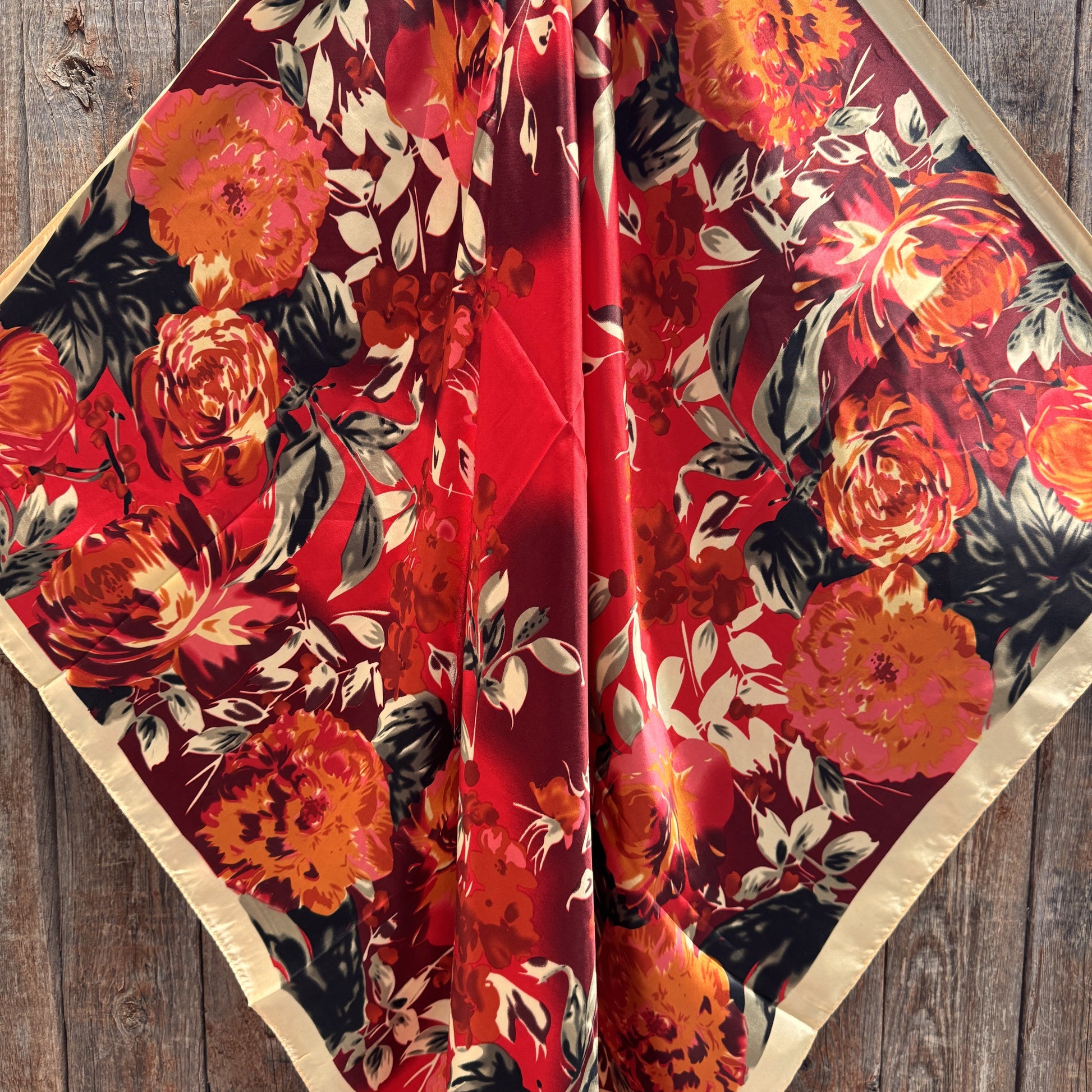 35X35" Red Floral Wild Rag / Scarf WR3447